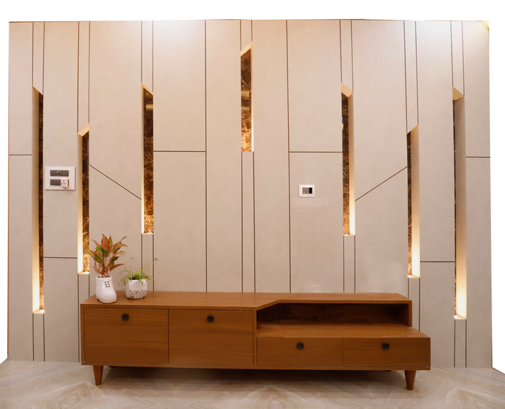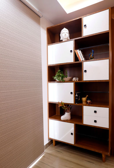 Inspired by the oldest type of living room in the world, "Cave", this living room defines the design inspired from natural and historic influences of collective minds of humans. The TV Cabinet serves as the "Fireplace" which is the center of attraction and the center of warmth for the usually stark lining room. The curtains and flooring maintain the esoteric edges of the room that give the focus to the TV cabinet.